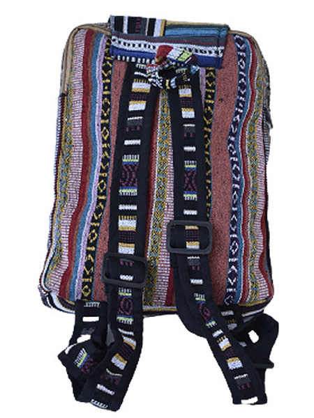 Very spacious woven cotton patchwork backpack. Great for class or a day bag.